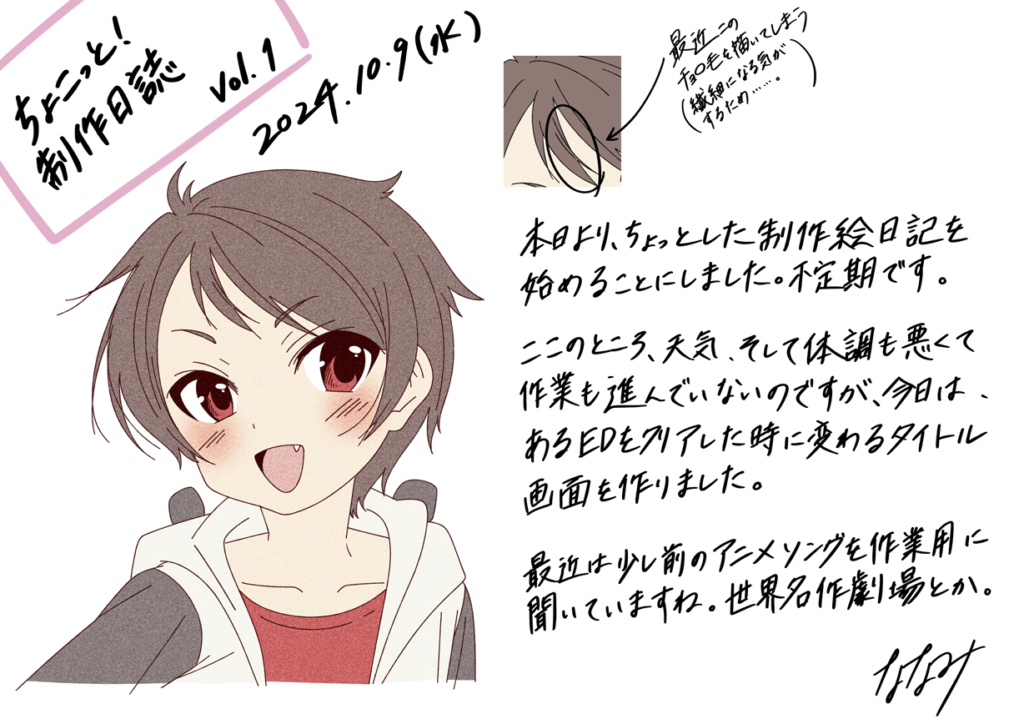 制作だけだと現状がいまいち伝わりにくいのと、息抜きのために描こうかなと思っています。